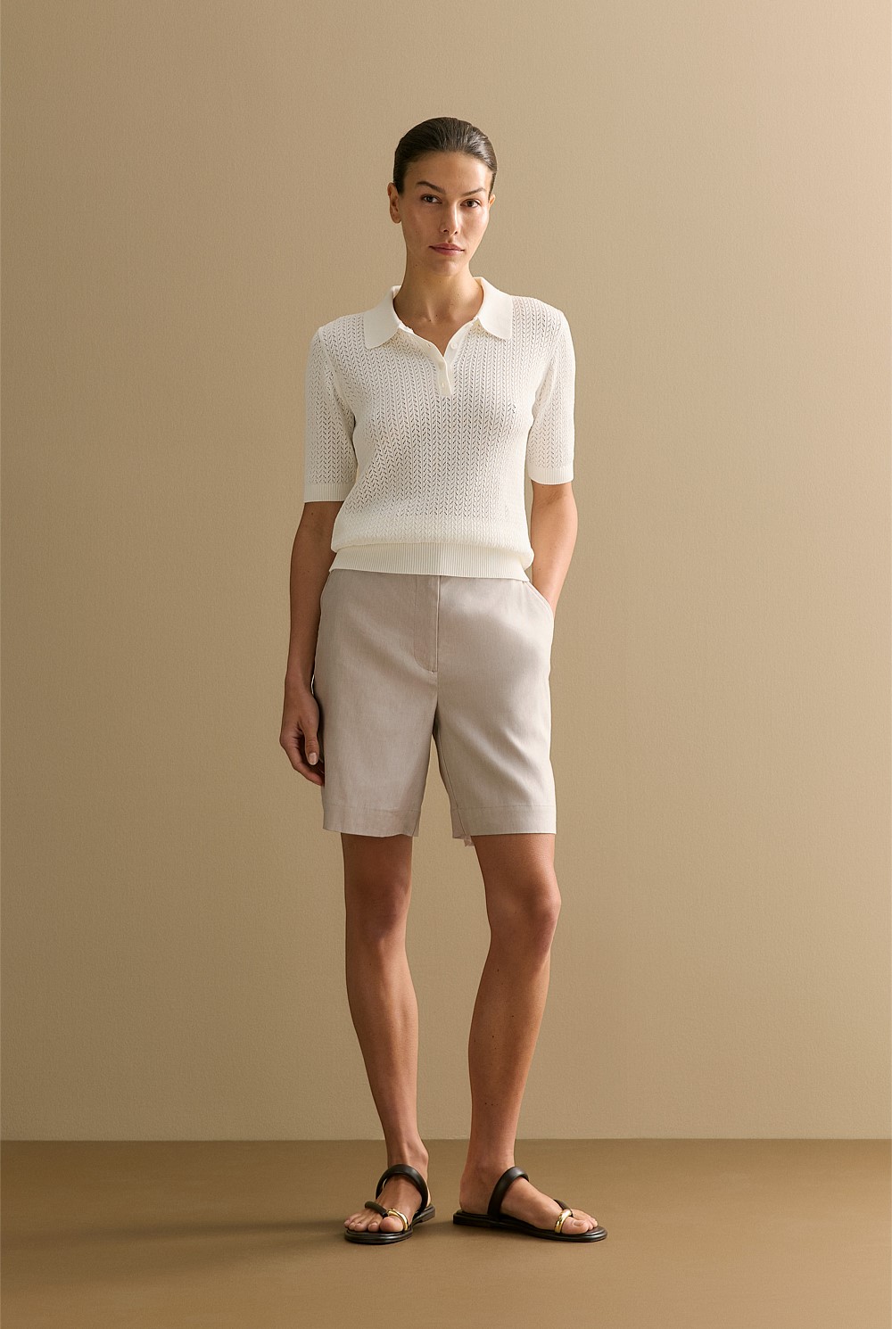 Yarn Dyed Stretch Linen Blend Longline Short